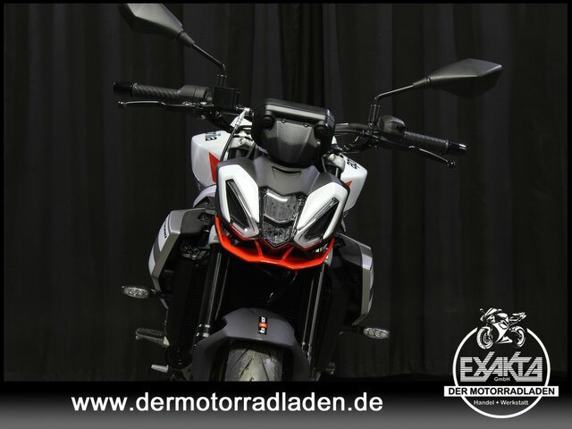 - Aprilia Lichtsignatur mit dreiteiligem Full-LED-Scheinwerferensemble und markantem LED-Tagfahrlicht inkl. integrierten Blinkern in Anlehnung an 660er Modelle